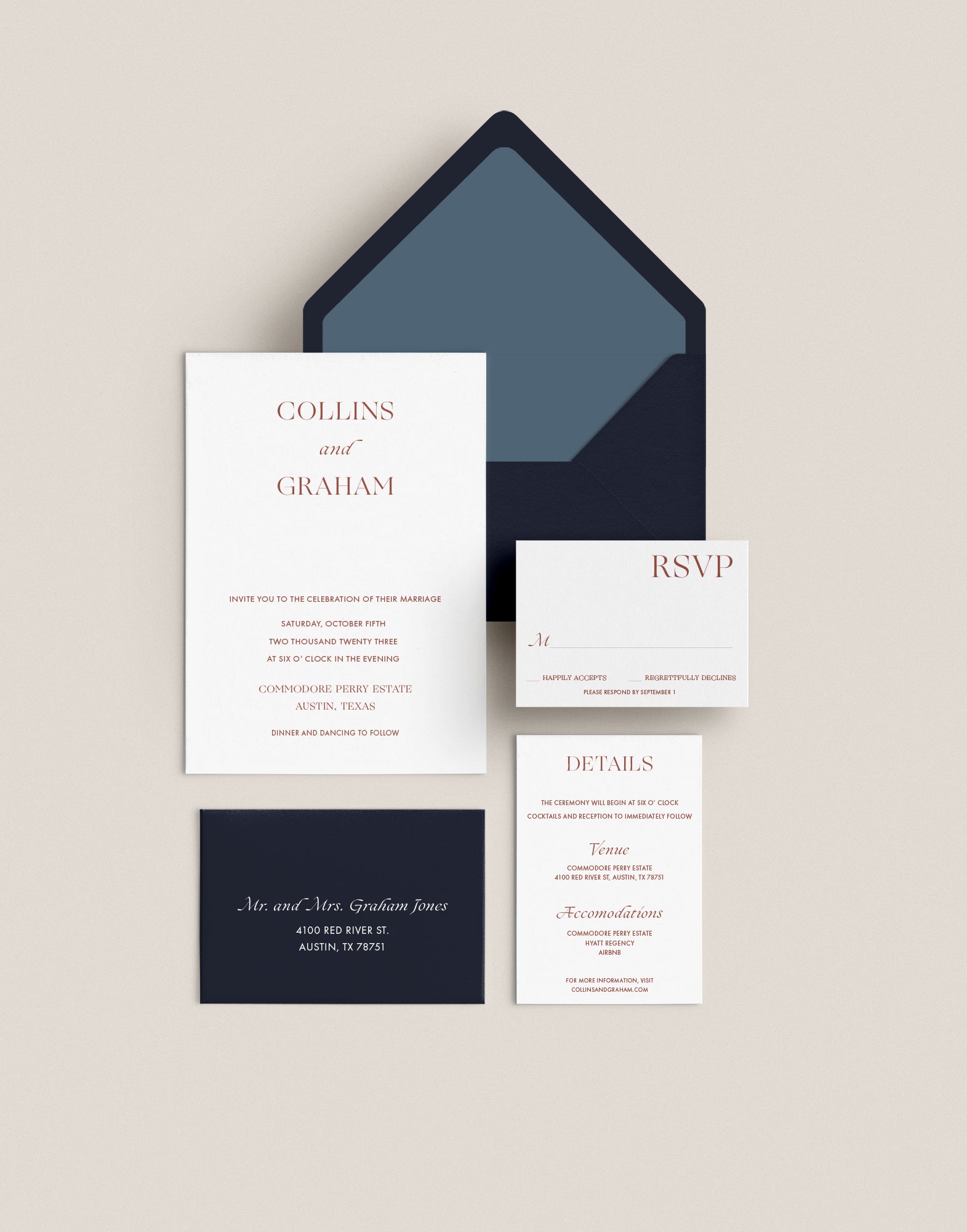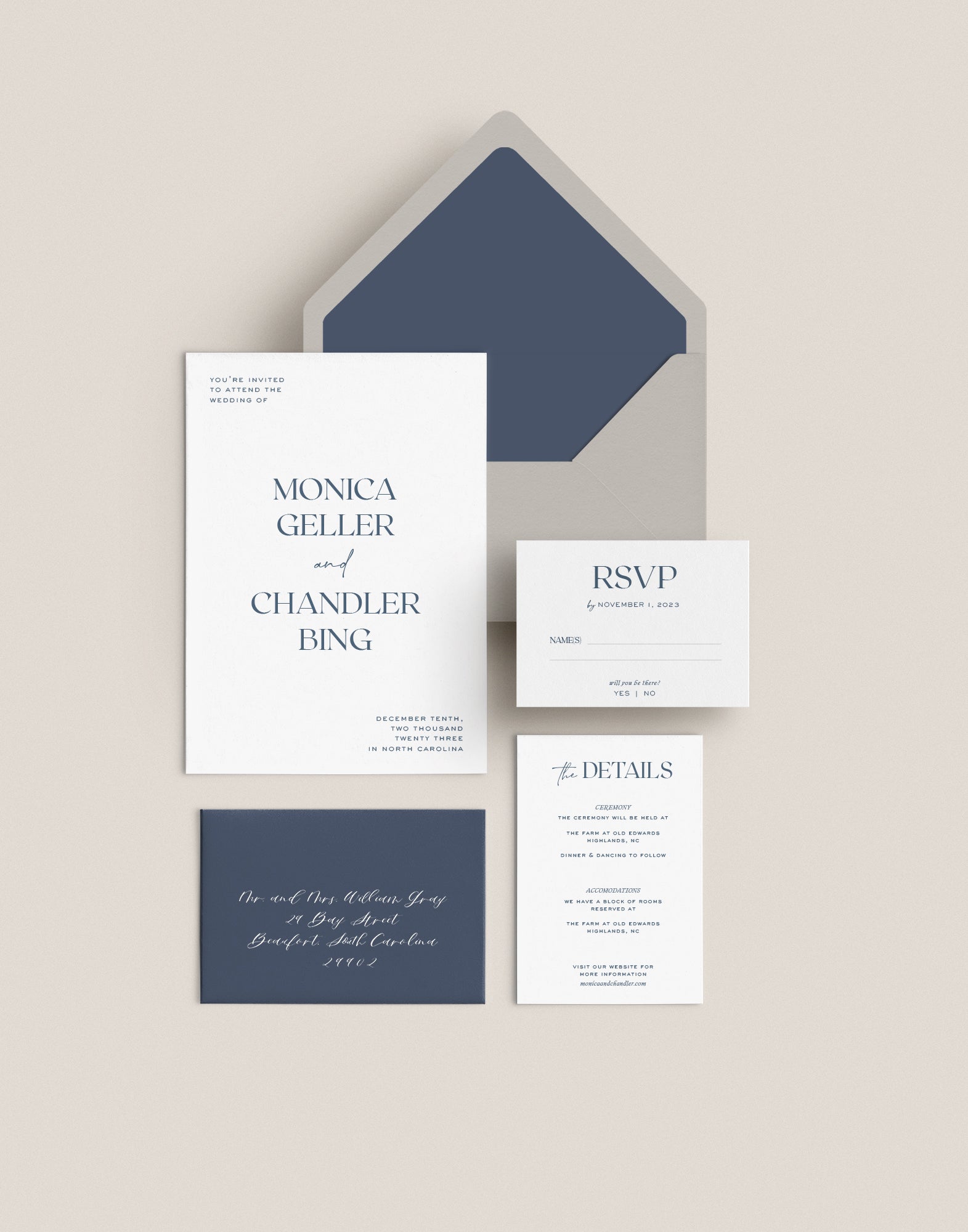 Shop our full suites of semi-custom wedding invitations. Experience luxurious designs with your budget in mind.